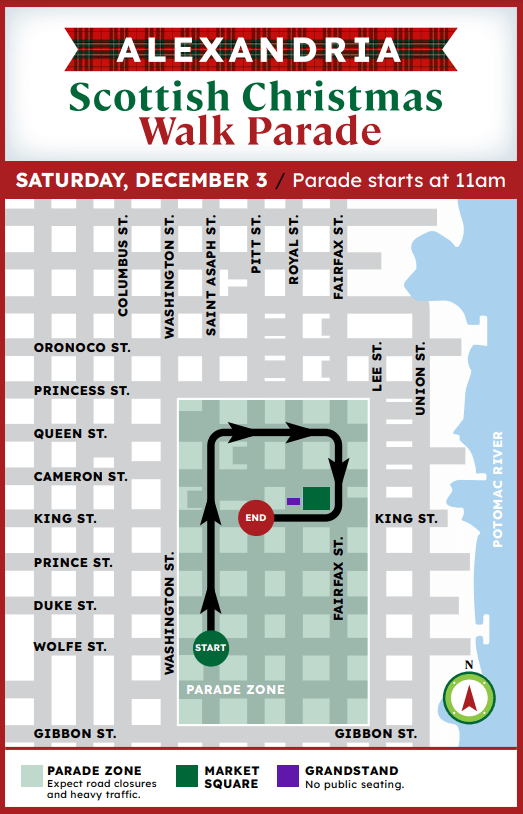 Hoy, la ciudad continúa celebrando su herencia con el icónico Desfile Navideño Escocés de Alexandria el sábado 3 de diciembre de 2022, a partir de las 11:00 am. Docenas de clanes escoceses vestidos con coloridos tartán desfilan por las calles del casco antiguo, acompañados por bandas de gaitas y tambores de toda la región, así como terriers y sabuesos y más. La ex concejal Redella “Del” Pepper será la Gran Mariscal del desfile.