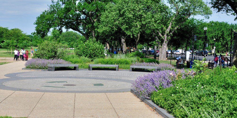 El Jardín de la Amistad Alemana Americana está ubicado en el National Mall de la ciudad de Washington DC, bordeando la Avenida Constitución entre las calles 15 y 17.