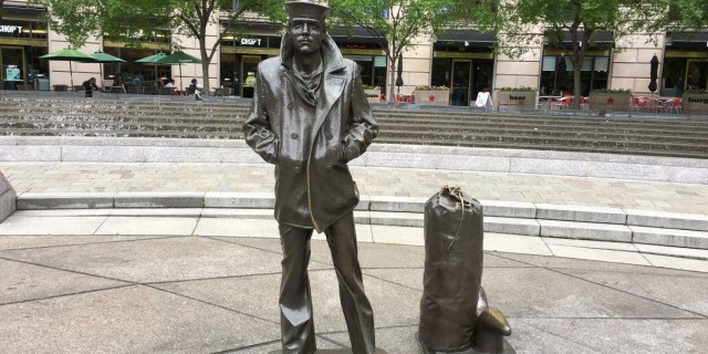 La Plaza del monumento presenta «The Lone Sailor» (El Marinero Solitario), una estatua de Stanly Bleifield y tributo a todo el personal de los servicios marítimos con vista al Mar de Granito, un mapa que representa los océanos del mundo, usando una proyección azimutal centrada en Washington DC. Alrededor de estos hay dos fuentes que honran al personal de la Marina de Guerra estadounidense y las otras Marinas de Guerra del mundo. Su hemisferio sur está rodeado por 26 altos relieves de bronce que conmemoran eventos, personal y comunidades de los distintos servicios marítimos.